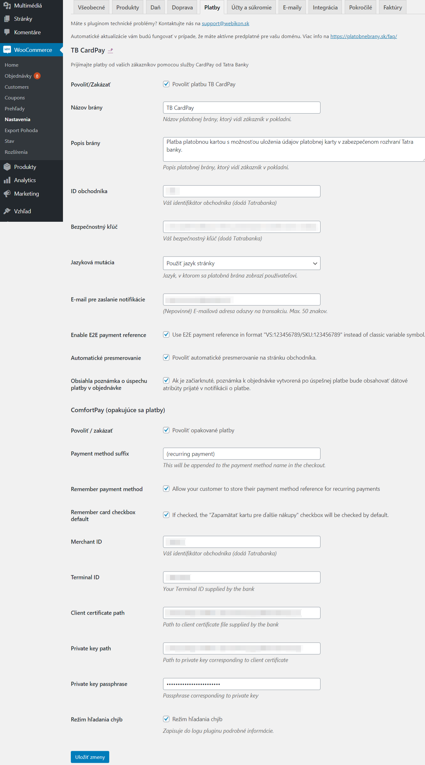 Postup pre nasadenie pluginu platobnej brány ComfortPay (Tatra Banka):